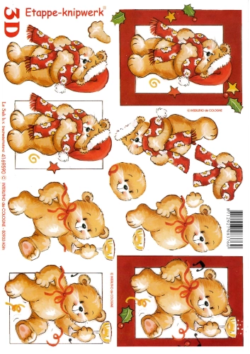 3D papíry pro vystřihování- Medvídek s vánoční čepicí