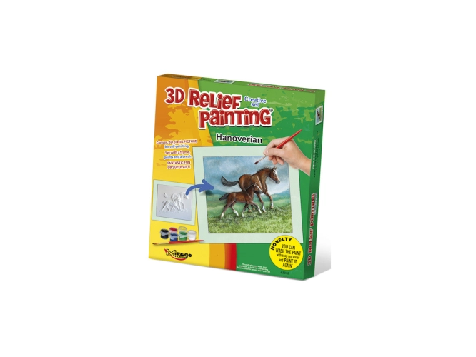 3D obrázek - plastový reliéfní obrázek. Sada obsahuje plastový obrázek 15x17 cm, papírový rámeček 19x21cm , akrylové barvy (6 ks) štětec.