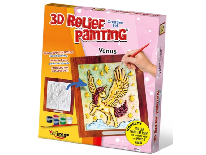 3D obrázek - plastový reliéfní obrázek. Sada obsahuje plastový obrázek 15x17 cm, papírový rámeček 19x21cm , akrylové barvy (6 ks) štětec.