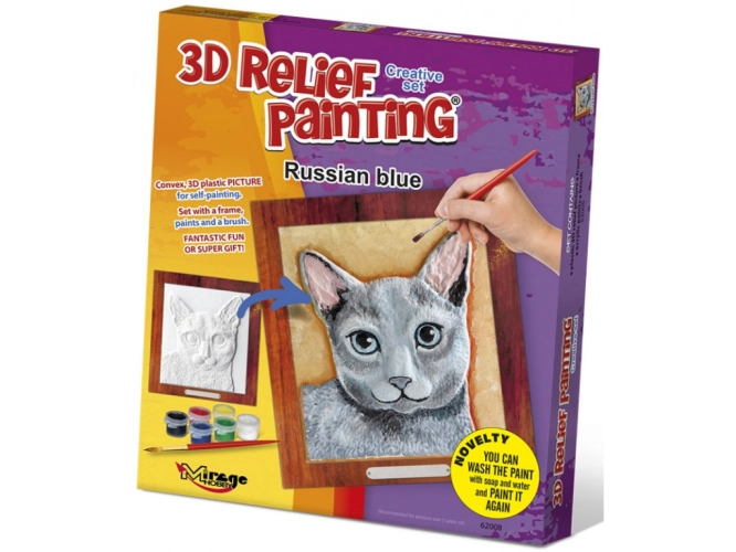 3D reliéfní obrázek 19x21cm Kočka - Ruská modrá