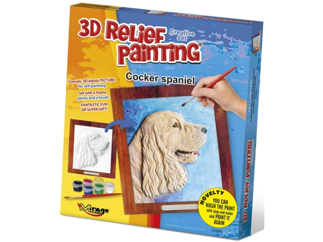 3D obrázek - plastový reliéfní obrázek. Sada obsahuje plastový obrázek 15x17 cm, papírový rámeček 19x21cm , akrylové barvy (6 ks) štětec.