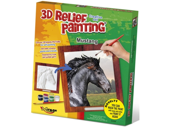 3D obrázek - plastový reliéfní obrázek. Sada obsahuje plastový obrázek 15x17 cm, papírový rámeček 19x21cm , akrylové barvy (6 ks) štětec.