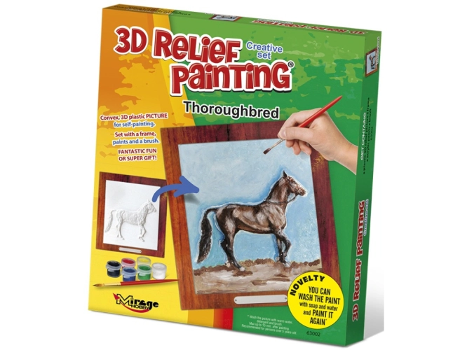 3D obrázek - plastový reliéfní obrázek. Sada obsahuje plastový obrázek 15x17 cm, papírový rámeček 19x21cm , akrylové barvy (6 ks) štětec.