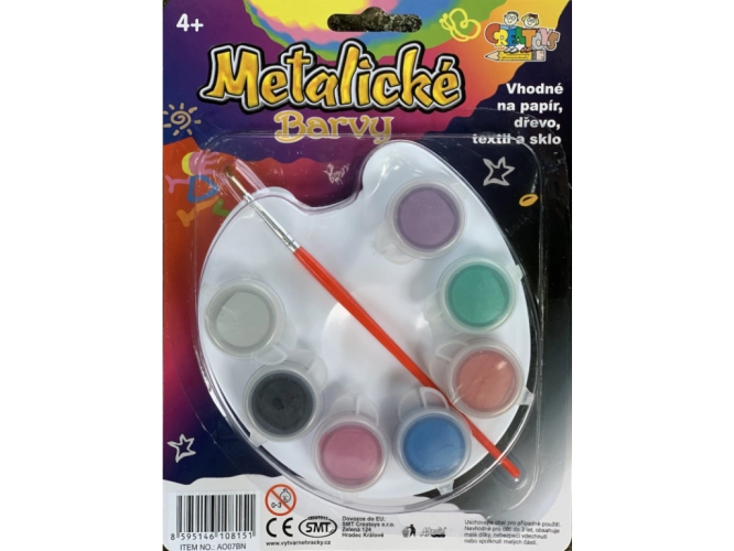 Obsahuje 7 metalických akrylových barev , paletu a štětec.