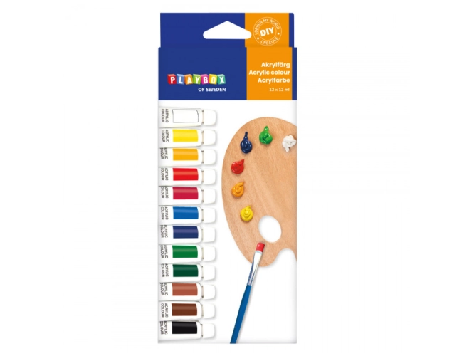 Balení obsahuje 12 barev (bílá, žlutá citronová, okrová, oranžová, červená, sv. modrá, sv. zelená, tm. modrá, hnědá, tm. modrá, černá) Vhodné na dřevo, keramiku, sklo, papír, plasty atd. Vodou ředitelné a omyvatelné. Barvy je možné vzájemně míchat k rozšíření barevné palety.