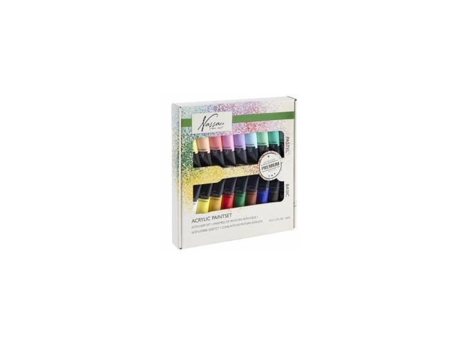 Obsahuje: 18 x 36 ml barev (základní+ pastelové)