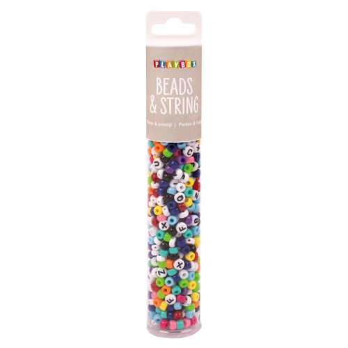 Barevné plastové korálky v tubě + šňůrka, 650 ks, mix různých tvarů