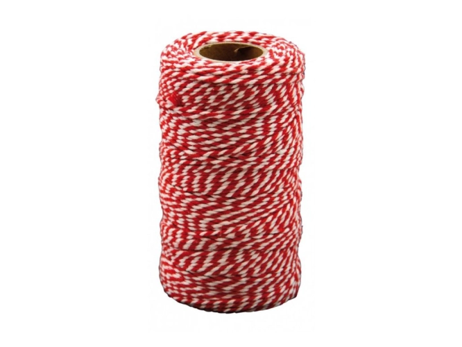 Červenobílá bavlnka 100 m × 2 mm | Bavlněná šňůra na tvoření, balení a dekorace