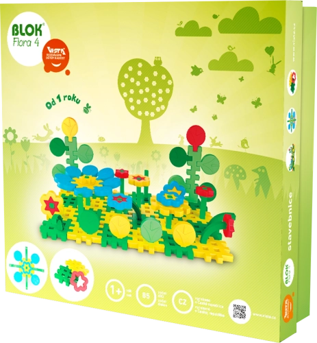Stavebnice BLOK - FLORA 4 obsahuje 85 dílků. Kromě základních dílků zde naleznete dílky pro sestavení různobarevných květin. Stavebnice Blok FLORA je určena pro nejmenší a děti předškolního věku. Pomáhá jim rozvíjet fantazií a jemnou motoriku. Stavebnice nabízí obrovské možnosti a díky variabilitě z ní sestavíte téměř cokoliv. Dílky stavebnice jsou dostatečně velké, takže si s ní mohou bezpečně hrát již děti od 1 roku.