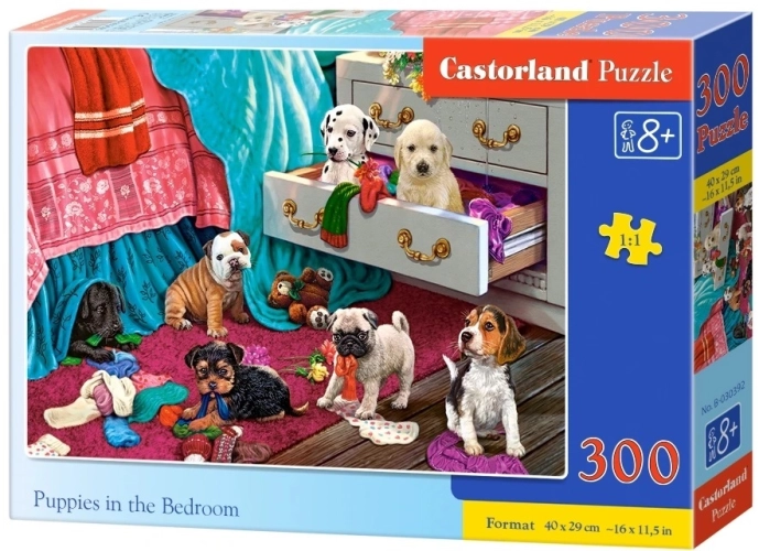 Castorland puzzle 300 dílků - Štěňata v ložnici