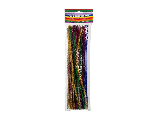 Třpytivé chlupaté modelovací drátky 50 ks x 6 mm. Balení obsahuje: 7 barev - růžová, modrá, fialová, zelená, červená, zlatá, stříbrná.