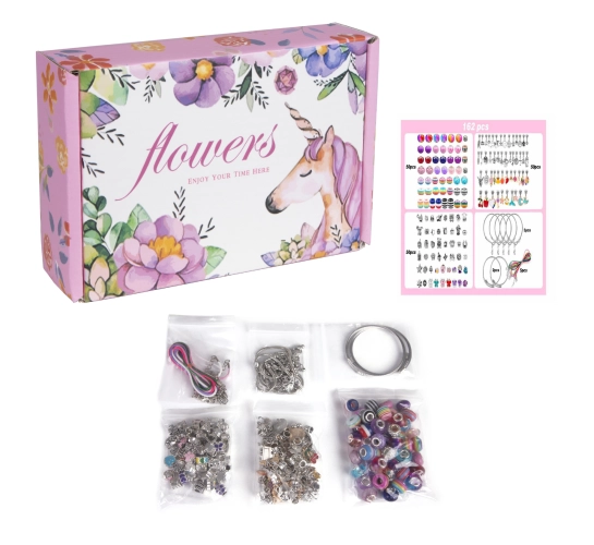 Velikost balení: 15 x 10 x 4 cmObsahuje: 3 balení různých trendy korálků, 3 balení různých náramků a šňůrek na navlékaní