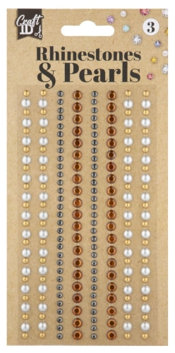 Dekorační kamínky a perly, 212 ks - zlatoměděné