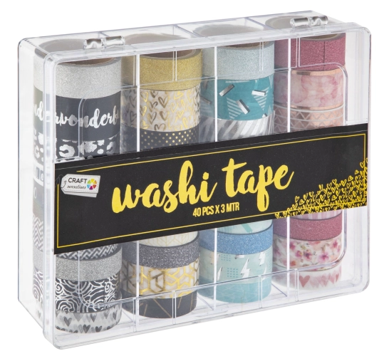 Dekorační lepicí páska - Washi pásky 3m, 40ks v boxu - třpytivé