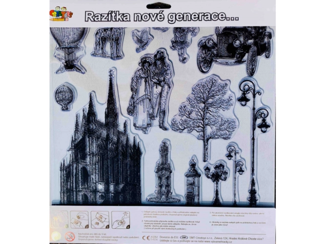 Dekorativní silikonová razítka s motivem historického města a chrámu přinášejí do vašich kreativních projektů jedinečný vintage styl. Razítka jsou umístěna na archu o rozměrech 30×30 cm a obsahují detailní ilustrace architektury, starých budov a městských scenérií. Jsou ideální pro scrapbooking, tvorbu přáníček, art journaling, mixed media projekty nebo vintage dekorace.