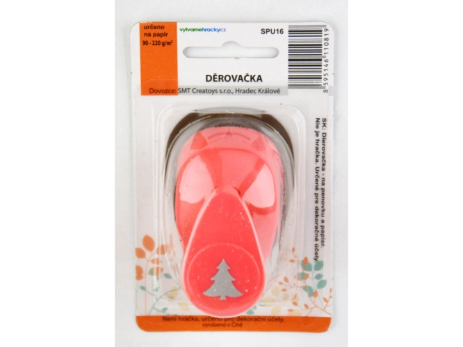 Děrovačka pro výtvarnou tvorbu. Postup: 1. pracujte s děrovačkou na pevné a rovné ploše. 2. vložte papír vhodné tloušťky - 90-220 g/m2 a zatlačte na páku statickým tlakem. Nikdy ne úderem na páku. 3. POUŽÍVEJTE POUZE NA PAPÍR. Děrovačky nikdy nepoužívejte na materiály potažené lepící vrstvou (například na samolepicí štítky), na pěnovku, na papírové ubrousky. Děrovačky nejsou vhodné pro děti do 3let.