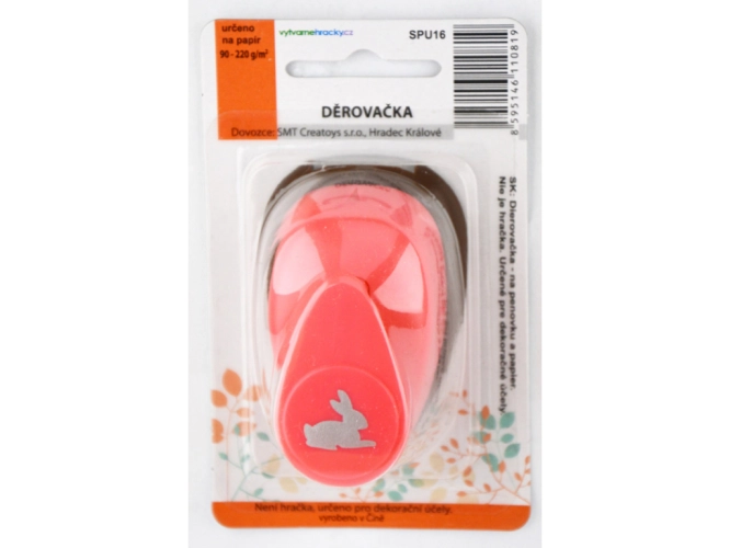 Děrovačka pro výtvarnou tvorbu. Postup: 1. pracujte s děrovačkou na pevné a rovné ploše. 2. vložte papír vhodné tloušťky - 90-220 g/m2 a zatlačte na páku statickým tlakem. Nikdy ne úderem na páku. 3. POUŽÍVEJTE POUZE NA PAPÍR. Děrovačky nikdy nepoužívejte na materiály potažené lepící vrstvou (například na samolepicí štítky), na pěnovku, na papírové ubrousky. Děrovačky nejsou vhodné pro děti do 3let.
