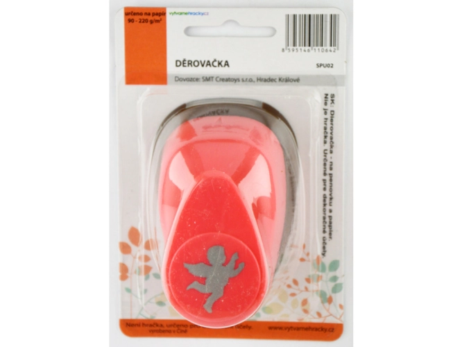Děrovačka pro výtvarnou tvorbu. Postup: 1. pracujte s děrovačkou na pevné a rovné ploše. 2. vložte papír vhodné tloušťky - 90-220 g/m2 a zatlačte na páku statickým tlakem. Nikdy ne úderem na páku. 3. POUŽÍVEJTE POUZE NA PAPÍR. Děrovačky nikdy nepoužívejte na materiály potažené lepící vrstvou (například na samolepicí štítky), na pěnovku, na papírové ubrousky. Děrovačky nejsou vhodné pro děti do 3let.