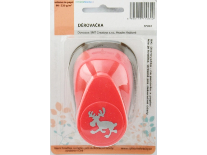Děrovačka pro výtvarnou tvorbu. Postup: 1. pracujte s děrovačkou na pevné a rovné ploše. 2. vložte papír vhodné tloušťky - 90-220 g/m2 a zatlačte na páku statickým tlakem. Nikdy ne úderem na páku. 3. POUŽÍVEJTE POUZE NA PAPÍR. Děrovačky nikdy nepoužívejte na materiály potažené lepící vrstvou (například na samolepicí štítky), na pěnovku, na papírové ubrousky. Děrovačky nejsou vhodné pro děti do 3let.