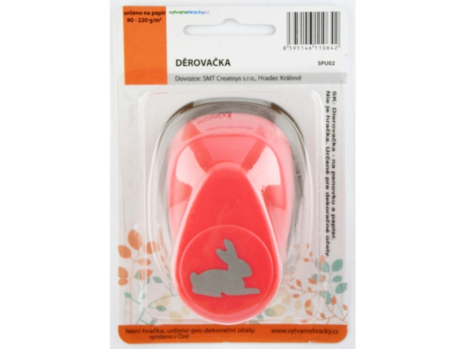 Děrovačka pro výtvarnou tvorbu. Postup: 1. pracujte s děrovačkou na pevné a rovné ploše. 2. vložte papír vhodné tloušťky - 90-220 g/m2 a zatlačte na páku statickým tlakem. Nikdy ne úderem na páku. 3. po proděravění opatrně vytáhněte zbylý papír. 4. POUŽÍVEJTE POUZE NA PAPÍR. Děrovačky nikdy nepoužívejte na materiály potažené lepící vrstvou (například na samolepicí štítky), na pěnovku, na papírové ubrousky. Děrovačky nejsou vhodné pro děti do 3let.