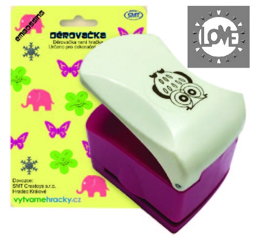 Děrovačka pro výtvarnou tvorbu. Velikost výseku 32 mm. Postup: 1. pracujte s děrovačkou na pevné a rovné ploše. 2. vložte papír vhodné tloušťky - 160-240 g/m2 a zatlačte na páku statickým tlakem. Nikdy ne úderem na páku. 3. po proděravění opatrně vytáhněte zbylý papír. 4. POUŽÍVEJTE POUZE NA PAPÍR. Děrovačky nikdy nepoužívejte na materiály potažené lepící vrstvou (například na samolepicí štítky), na pěnovku, na papírové ubrousky. 5. raznici lze ostřit slabou hliníkovou folii a mazat voskovým papírem. 6. DOPORUČUJEME DĚROVAČKU VYČISTIT PO 3. POUŽITÍCH - odklopte páku raznice, vyjměte kolečko pod pákou a úzkým předmětem odstraňte přebytečné papírky. Děrovačka není hračka.