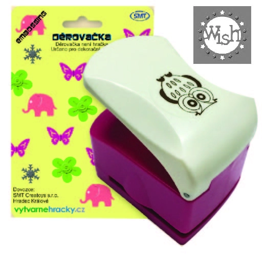 Děrovačka pro výtvarnou tvorbu. Velikost výseku 32 mm. Postup: 1. pracujte s děrovačkou na pevné a rovné ploše. 2. vložte papír vhodné tloušťky - 160-240 g/m2 a zatlačte na páku statickým tlakem. Nikdy ne úderem na páku. 3. po proděravění opatrně vytáhněte zbylý papír. 4. POUŽÍVEJTE POUZE NA PAPÍR. Děrovačky nikdy nepoužívejte na materiály potažené lepící vrstvou (například na samolepicí štítky), na pěnovku, na papírové ubrousky. 5. raznici lze ostřit slabou hliníkovou folii a mazat voskovým papírem. 6. DOPORUČUJEME DĚROVAČKU VYČISTIT PO 3. POUŽITÍCH - odklopte páku raznice, vyjměte kolečko pod pákou a úzkým předmětem odstraňte přebytečné papírky. Děrovačka není hračka.