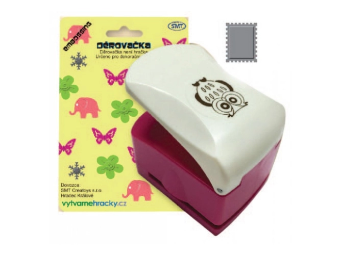 Děrovačka pro výtvarnou tvorbu. Velikost výseku 32 mm. Postup: 1. pracujte s děrovačkou na pevné a rovné ploše. 2. vložte papír vhodné tloušťky - 160-240 g/m2 a zatlačte na páku statickým tlakem. Nikdy ne úderem na páku. 3. po proděravění opatrně vytáhněte zbylý papír. 4. POUŽÍVEJTE POUZE NA PAPÍR. Děrovačky nikdy nepoužívejte na materiály potažené lepící vrstvou (například na samolepicí štítky), na pěnovku, na papírové ubrousky. 5. raznici lze ostřit slabou hliníkovou folii a mazat voskovým papírem. 6. DOPORUČUJEME DĚROVAČKU VYČISTIT PO 3. POUŽITÍCH - odklopte páku raznice, vyjměte kolečko pod pákou a úzkým předmětem odstraňte přebytečné papírky. Děrovačka není hračka.