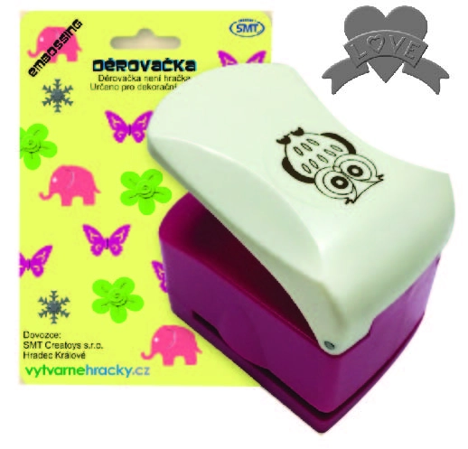 Děrovačka pro výtvarnou tvorbu. Velikost výseku 32 mm. Postup: 1. pracujte s děrovačkou na pevné a rovné ploše. 2. vložte papír vhodné tloušťky - 160-240 g/m2 a zatlačte na páku statickým tlakem. Nikdy ne úderem na páku. 3. po proděravění opatrně vytáhněte zbylý papír. 4. POUŽÍVEJTE POUZE NA PAPÍR. Děrovačky nikdy nepoužívejte na materiály potažené lepící vrstvou (například na samolepicí štítky), na pěnovku, na papírové ubrousky. 5. raznici lze ostřit slabou hliníkovou folii a mazat voskovým papírem. Děrovačka není hračka.