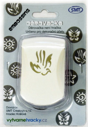 Děrovačka pro výtvarnou tvorbu. Velikost výseku 28 mm. Postup: 1. pracujte s děrovačkou na pevné a rovné ploše. 2. vložte papír vhodné tloušťky - 160-240 g/m2 a zatlačte na páku statickým tlakem. Nikdy ne úderem na páku. 3. po proděravění opatrně vytáhněte zbylý papír. 4. POUŽÍVEJTE POUZE NA PAPÍR. Děrovačky nikdy nepoužívejte na materiály potažené lepící vrstvou (například na samolepicí štítky), na pěnovku, na papírové ubrousky. 5. raznici lze ostřit slabou hliníkovou folii a mazat voskovým papírem. Děrovačky nejsou vhodné pro děti do 3let.