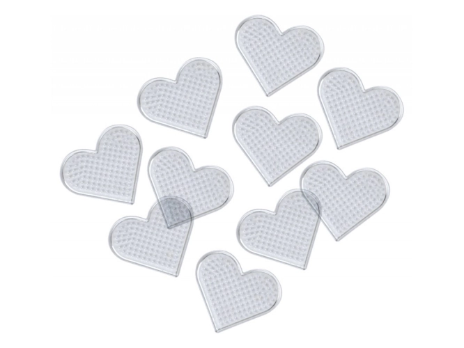 Desky pro zažehlovací korálky - srdce, 8 x 8 cm, balení obsahuje 10 ks. Destičky jsou vhodné pro zažehlovací korálky o Ø 5 cm.