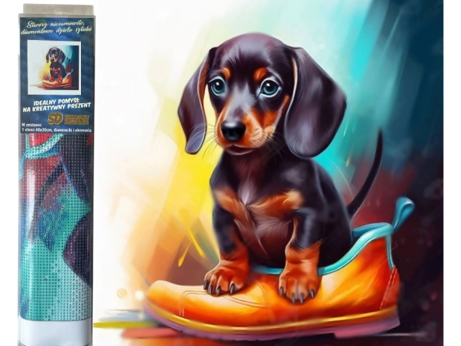 Diamantové malování - Jezevčík v botě 30 x 40 cm