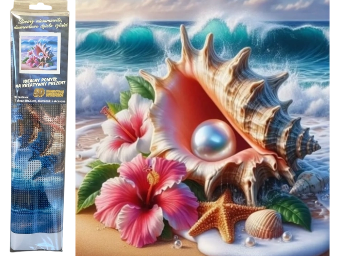 Diamantové malování - Mušle s perlou 30 x 40 cm