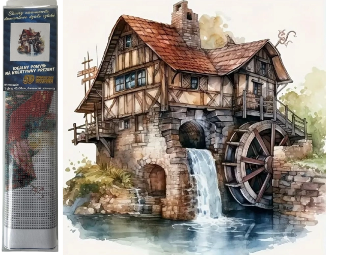 Diamantové malování Domek s mlýnem 30 x 40 cm