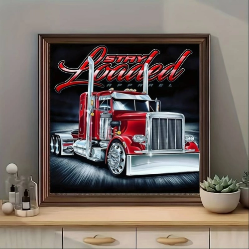 Diamantový obrázek - červený tahač 30 x 40 cm