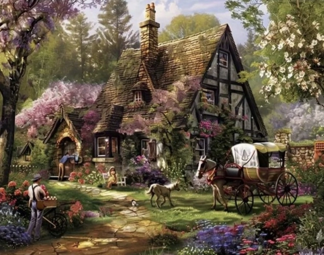 Diamantový obrázek - venkovská chalupa 30 x 40 cm