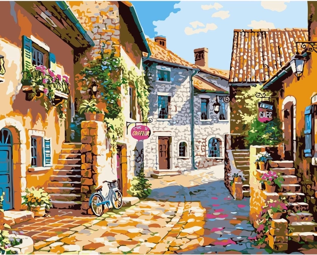 Diamantový obrázek- Kamenná ulice v Itálii 30x40cm