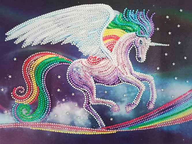 Diamantový obrázek 7D Jednorožec a duha 30x40cm