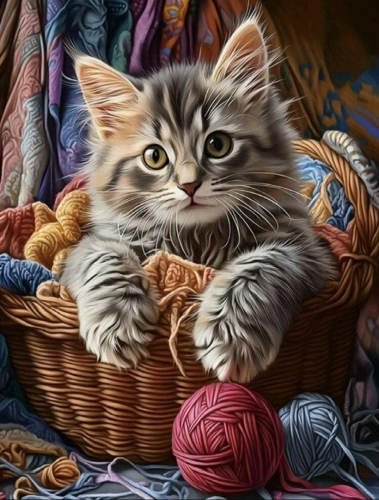 Diamantový obrázek Kočka v košíku 30 x 40 cm