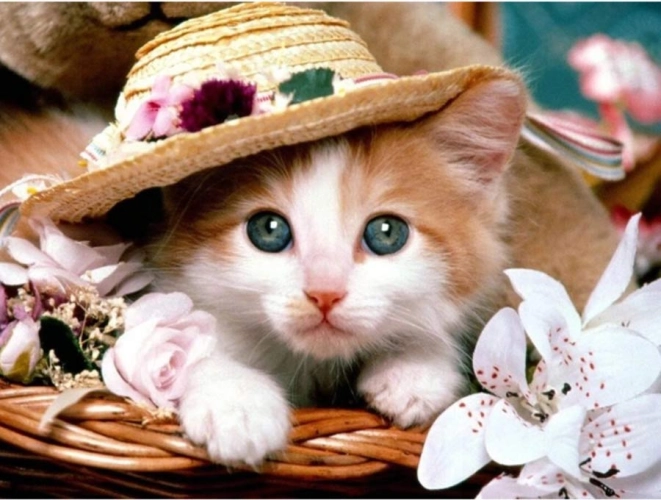 Diamantový obrázek Kotě v klobouku 30x40cm