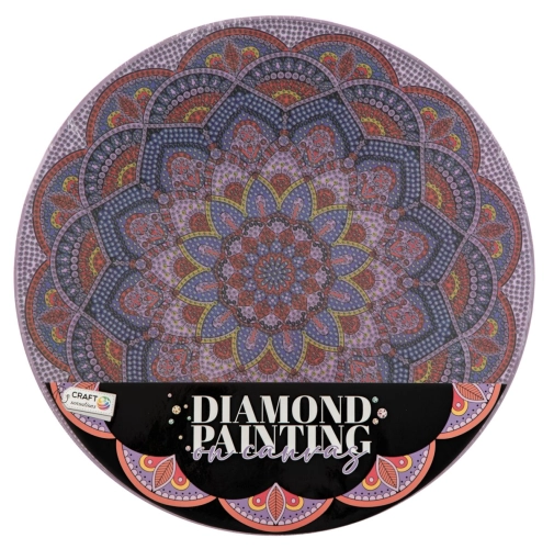 Diamantový obrázek na plátně, kulatý 30 cm - mandala, fialová květina