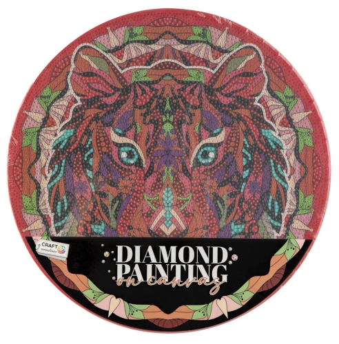 Diamantový obrázek na plátně, kulatý 30 cm - mandala, lev