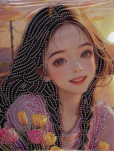 Diamantový obrázek na plátně 23 x 30 cm - dívka a tulipány