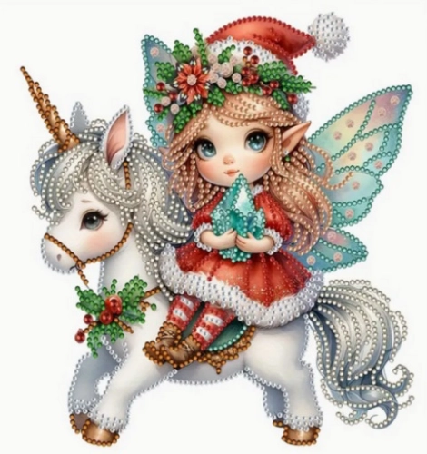 Diamantový obrázek na plátně 23 x 30 cm - Vánoční víla s jednorožcem
