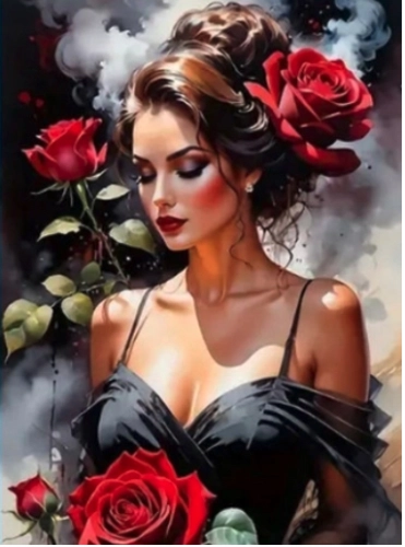 Diamantový obrázek portrét dámy s růžemi 30 x 40 cm