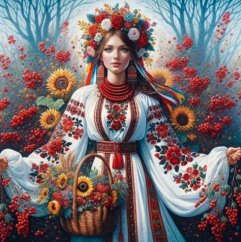 Diamantový obrázek slovanská žena a slunečnice 30 x 40 cm