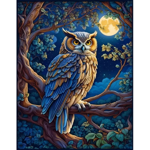 Diamantový obrázek sova a úplněk 30 x 40 cm