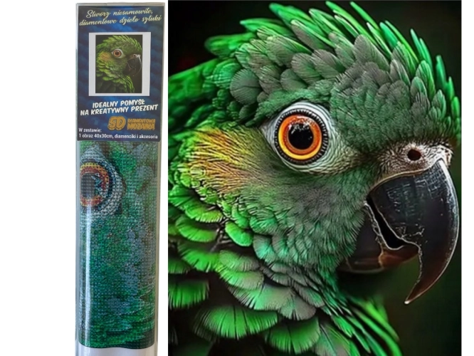 Diamantový obrázek zelený papoušek 30 x 40 cm