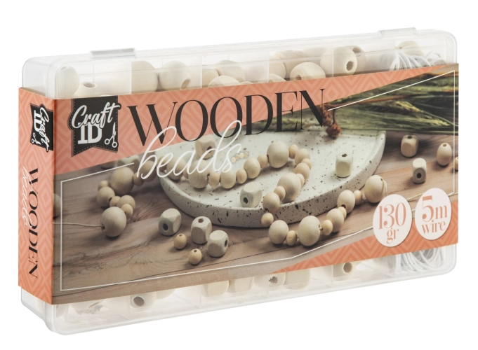- 130 g přírodních dřevěných korálků: Různé tvary a velikosti, které vám dávají nekonečné možnosti.
