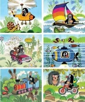 Dřevěné kostky Krtek a dopravní prostředky - 20 kostek