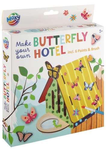 Dřevěný motýlí hotel, 6 akrylových barev, štětec